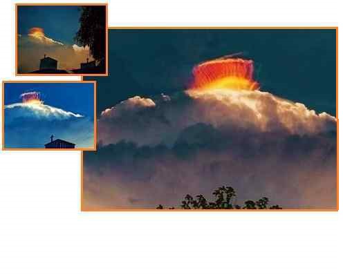 ZetaTalk Объяснение 25.10.2008: В прошлом мы уже говорили о том, что неоновые облака или световые столбы иногда появляются из-за изменений в атмосфере, вызванных хвостом Планеты X. Световые столбы — это быстро сгорающие газовые пламена в атмосфере. Неоновые облака не видны ночью, так как они сильно отражают солнечный свет в основном на рассвете или в сумерках. Это происходит не из-за отражения водяного пара, как в случае с радугой, а из-за других химических веществ в атмосфере. Это недавнее розовое облако над Лондоном было похоже на неоновое, но отражало огни города, как объясняется в статье. Однако это не могло произойти без попадания в атмосферу химических веществ из хвоста Планеты X. Такие явления будут происходить всё чаще.