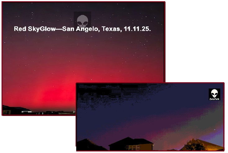 11.11.2025: Это свечение в небе? Свет от горящей нефти, попадающей в верхние слои атмосферы? Да, это действительно так, из-за шлейфа в Сибири. Появление световых башен, поднимающихся над землёй, связано с тем, что сочувственные колебания земли реагируют на колебания, которые, как мы и предсказывали, происходят в верхних слоях атмосферы. Это первое убедительное доказательство нашего предсказания о свечении в небе. Тот факт, что это произошло на ночной стороне земного шара, является ещё одним подтверждением.